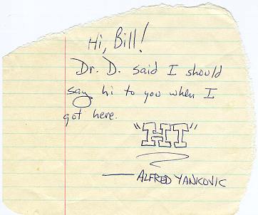 I went away to Cal Poly, San Luis Obispo the very same year as Al Yankovic. So the good doctor told Al and me that we ought to get in touch. I think it was late in the year I got this note from Al.